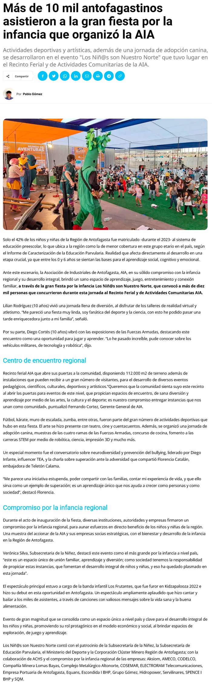 AIA: 10 mil participantes en gran fiesta por la infancia 'Los Niñ@s son Nuestro Norte' - (soyantofagasta)