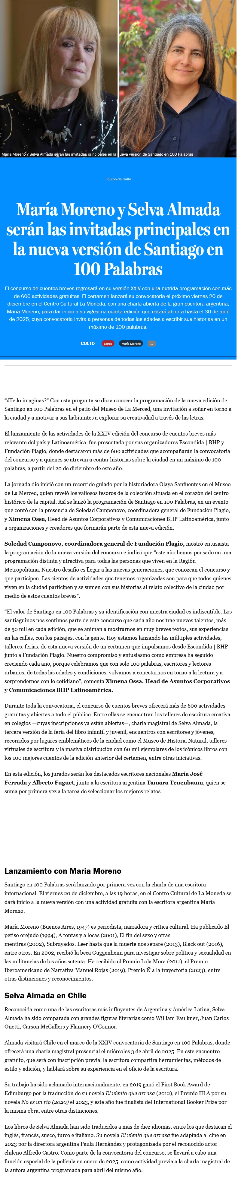 María Moreno y Selva Almada expondrán en Chile en la nueva versión de Santiago en 100 palabras - (El Mostrador)