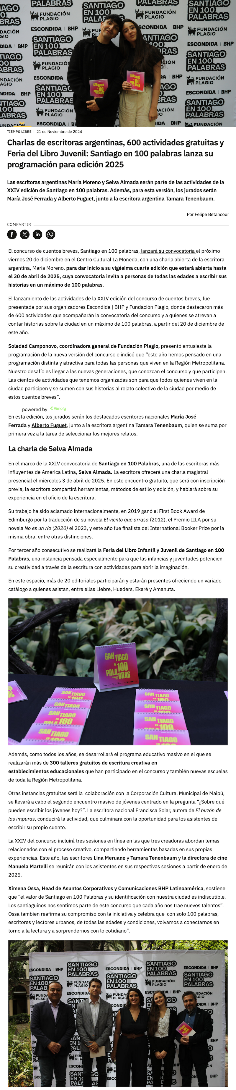 María Moreno y Selva Almada serán las invitadas principales en la nueva versión de Santiago en 100 Palabras - (radioagricultura.cl)