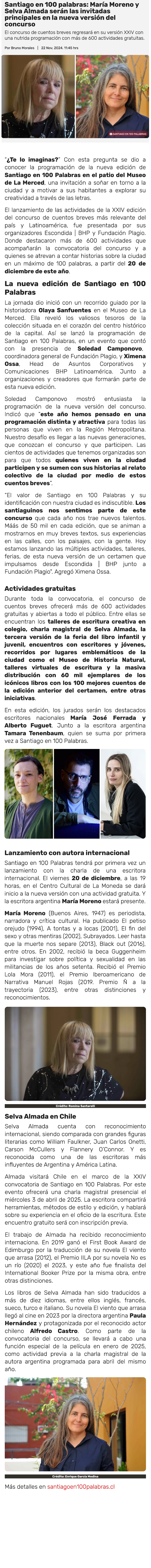 Santiago en 100 Palabras: María Moreno y Selva Almada serán las invitadas principales - (24horas.cl)