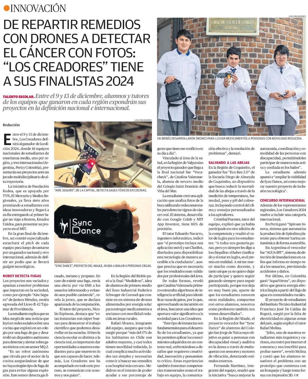 De repartir remedios con drones a detectar el cáncer con fotos: "Los Creadores" tiene a sus finalistas 2024 - (Medios Regionales Cadena El Mercurio)