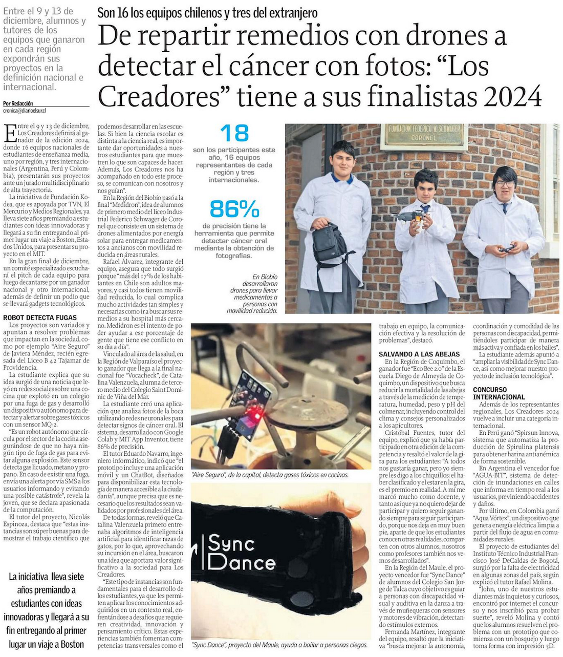De repartir remedios con drones a detectar el cáncer con fotos: "Los Creadores" tiene a sus finalistas 2024 - (El Mercurio de Antofagasta)