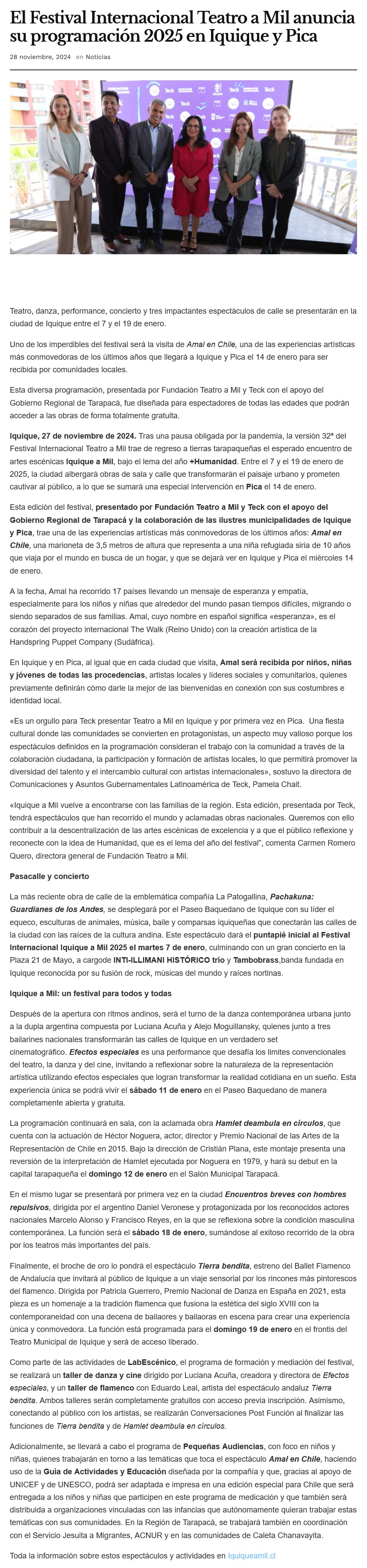 El Festival Internacional Teatro a Mil anuncia su programación 2025 en Iquique y Pica - (ceinoticias.cl)