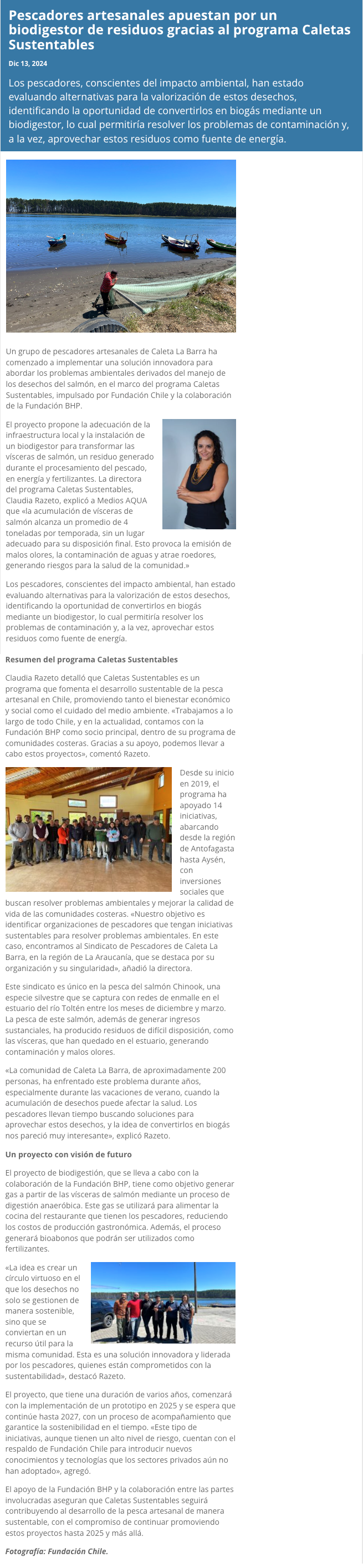 Innovador proyecto busca transformar los desechos de salmón en gas metano o biogás - (El Austral de La Araucanía)