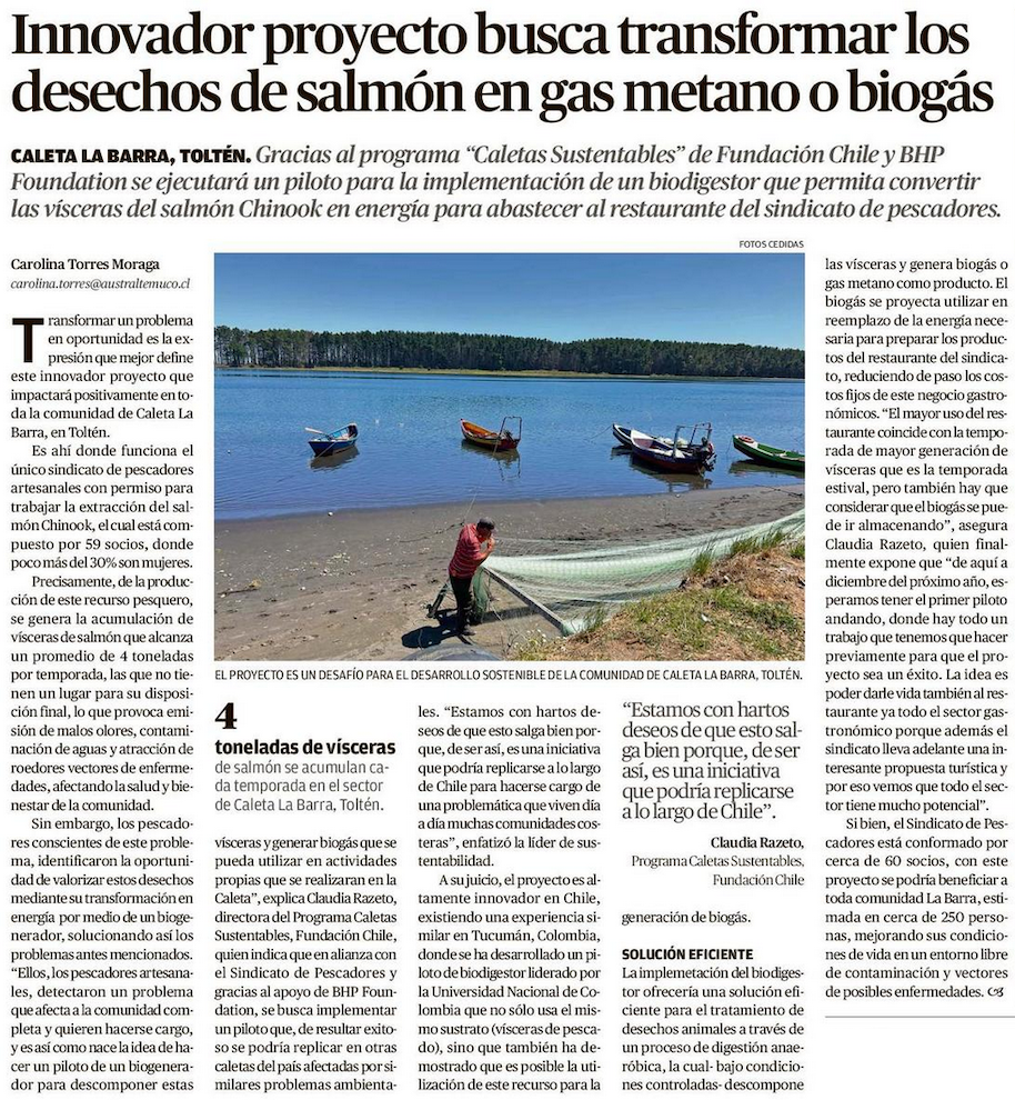 Pescadores artesanales apuestan por un biodigestor de residuos gracias al programa Caletas Sustentables - (aqua.cl)