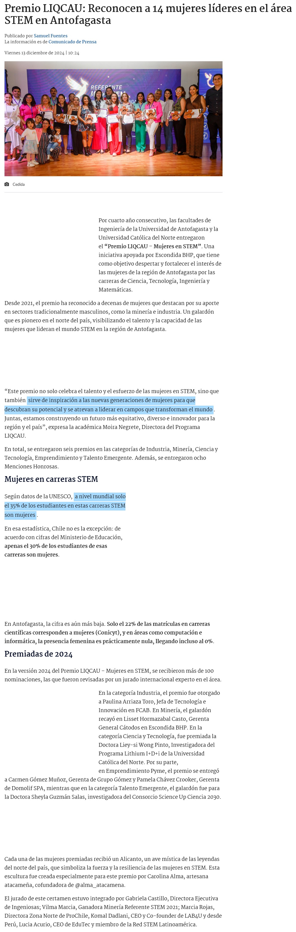 Cuarta edición del Premio LIQCAU – Mujeres en STEM reconoció a 14 líderes de la región de Antofagasta - (noticias.ucn.cl)