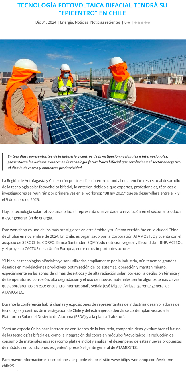 Chile será el epicentro de la tecnología fotovoltaica bifacial - (portalminero)