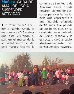 Caída de Amal obligó a suspender actividad - (El Mercurio de Antofagasta)