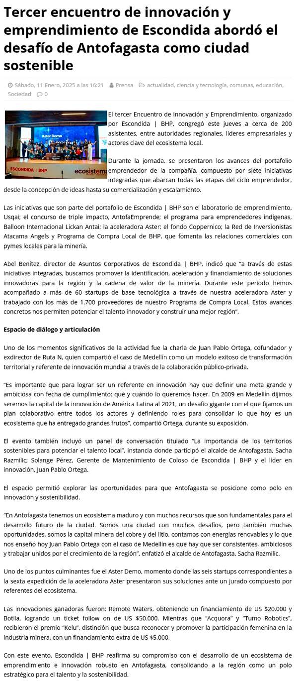 Tercer encuentro de innovación y emprendimiento de Escondida | BHP abordó el desafío de Antofagasta como ciudad sostenible - (minerialocal.cl)