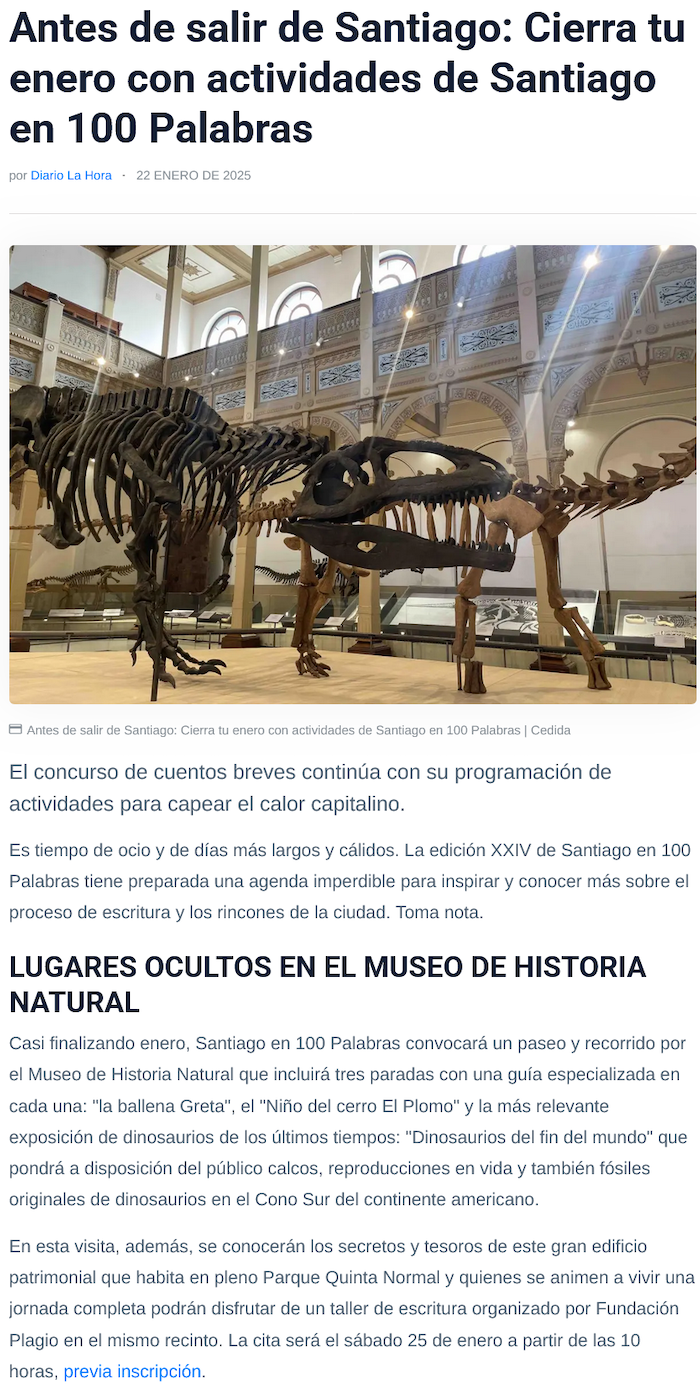 Antes de salir de Santiago: Cierra tu enero con actividades de Santiago en 100 Palabras - (lahora.cl)