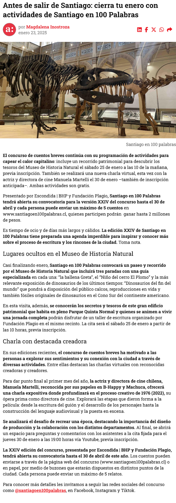Antes de salir de Santiago: Cierra tu enero con actividades de Santiago en 100 Palabras - (La Hora)