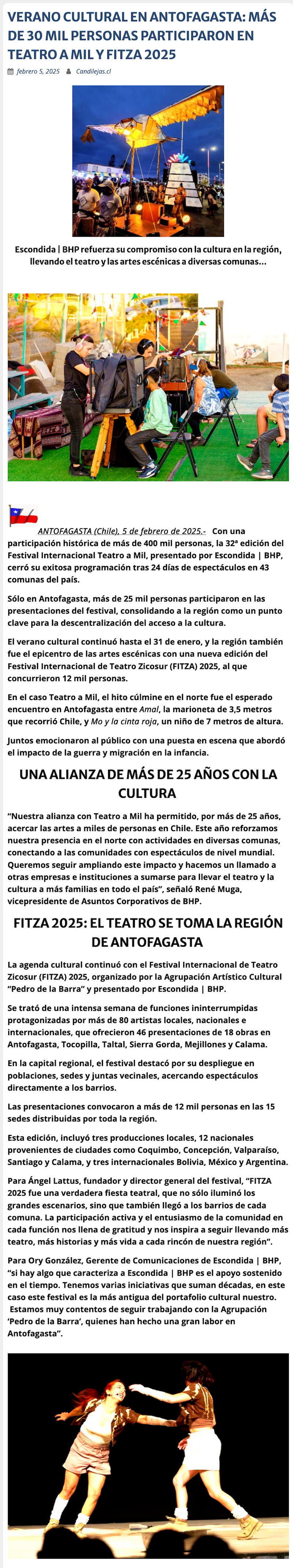 Antofagasta vive un verano cultural: más de 30 mil personas participaron en Teatro a Mil y FITZA 2025 - (redimin)