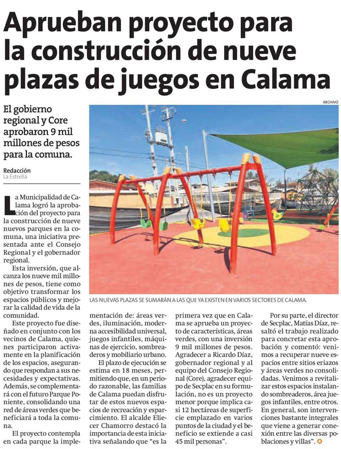 Aprueban millonaria inversión para nueve parques en Calama - (elamerica)