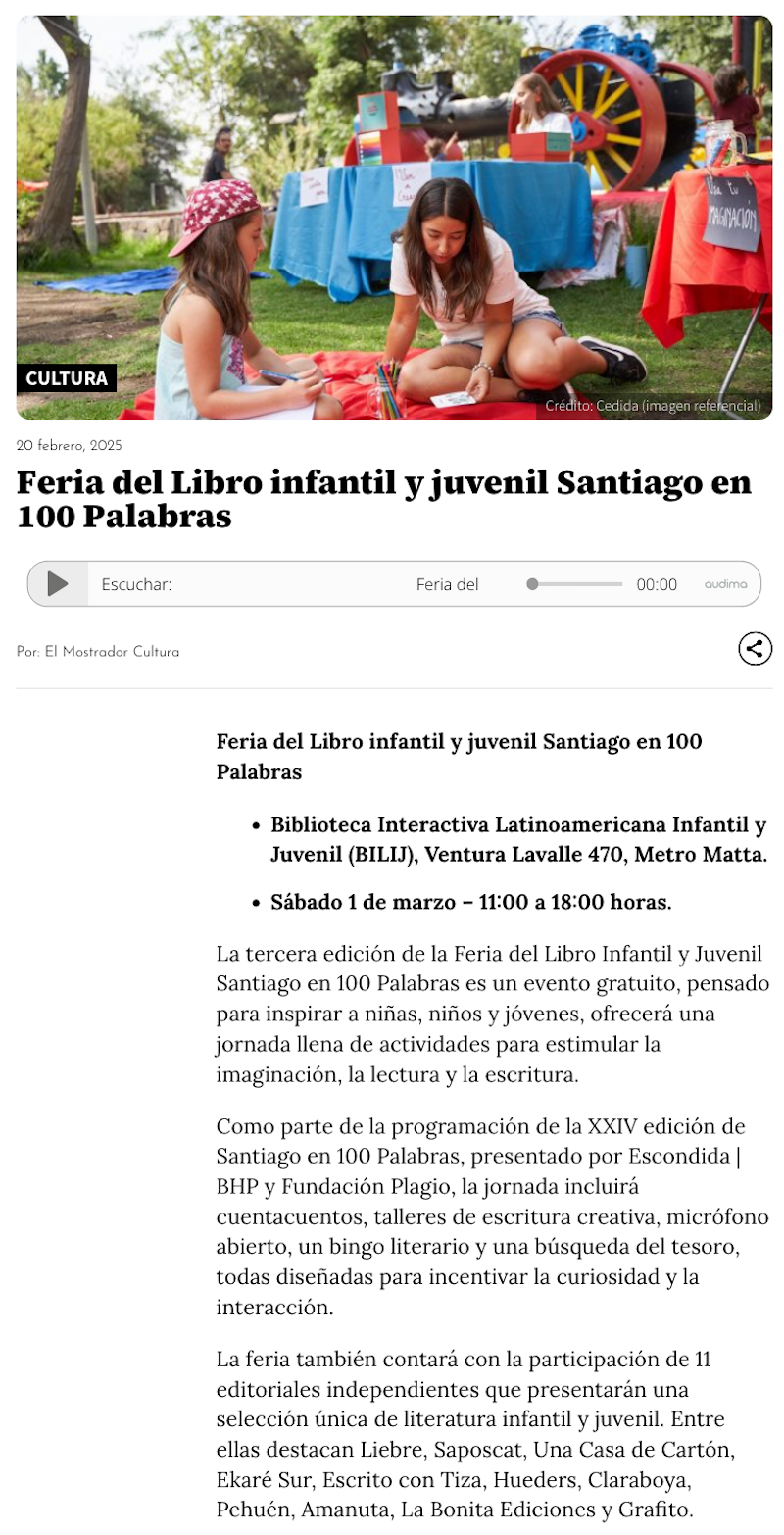 La Feria del Libro Infantil y Juvenil en Santiago en 100 Palabras vuelve para despedir el verano - (radioagricultura.cl)
