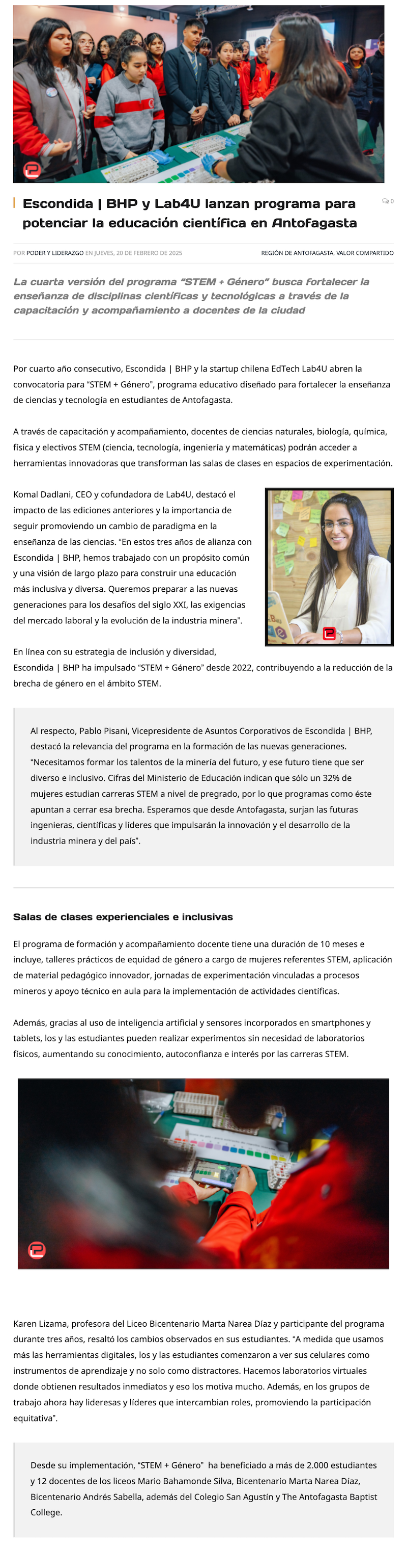 Escondida | BHP y Lab4U lanzan programa para potenciar la educación científica en Antofagasta - (portaleduca.cl)