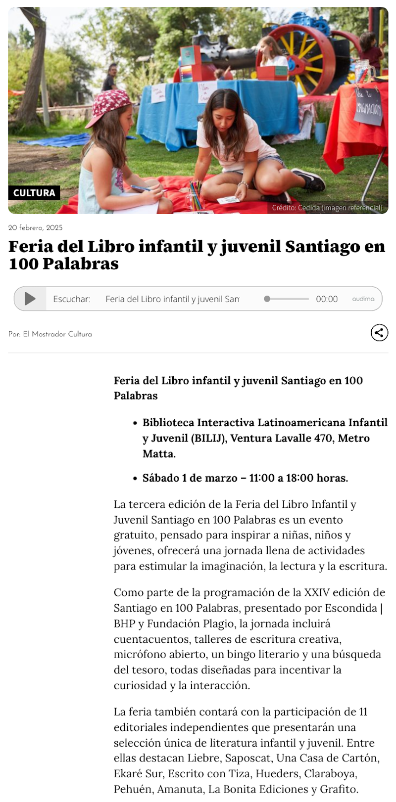 La Feria del Libro Infantil y Juvenil en Santiago en 100 Palabras vuelve para despedir el verano - (radioagricultura.cl)