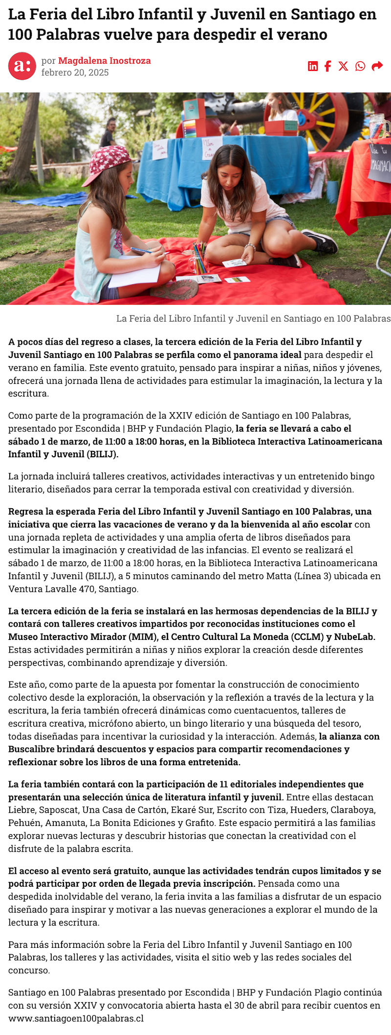 Feria del Libro infantil y juvenil Santiago en 100 Palabras - (El Mostrador)