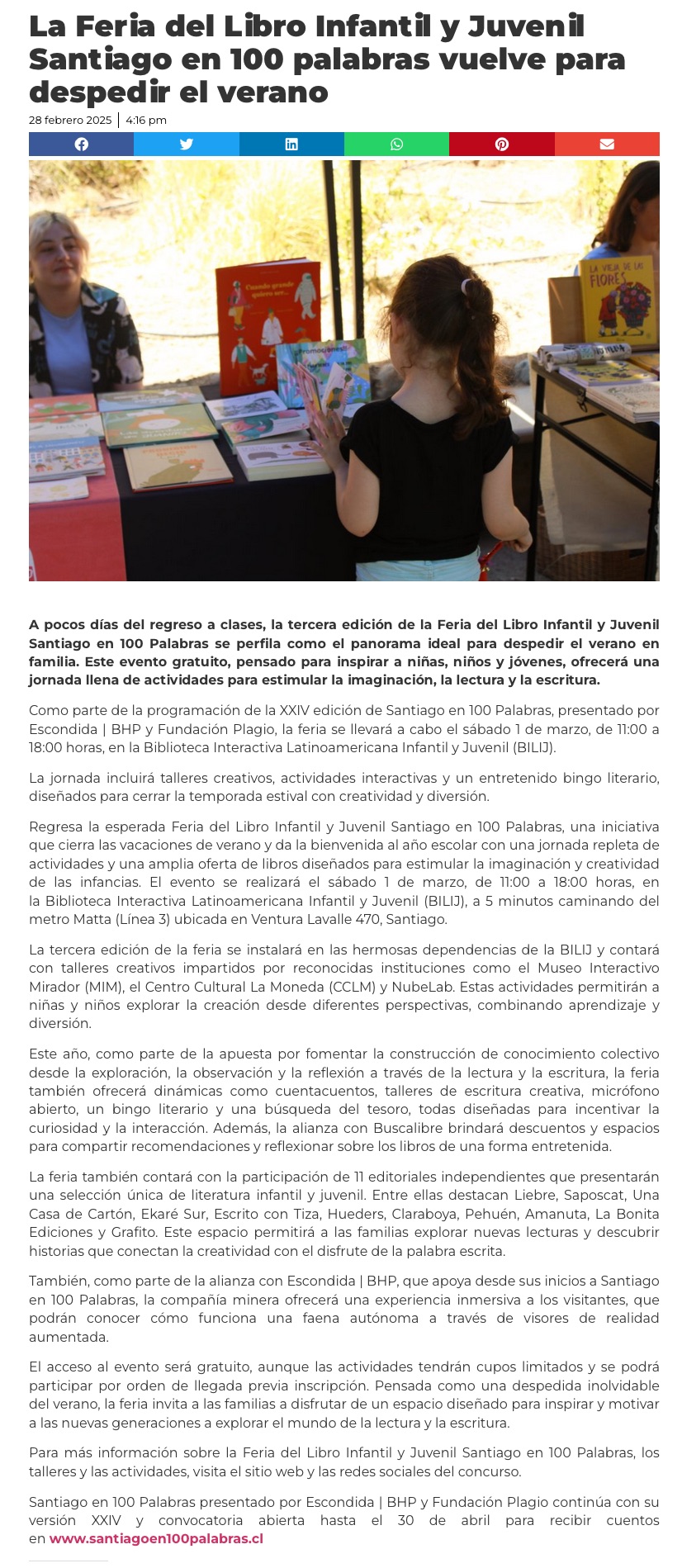 Feria del Libro Infantil y Juvenil Santiago en 100 Palabras: un panorama cultural gratis en Matta Sur - (La Tercera Online)