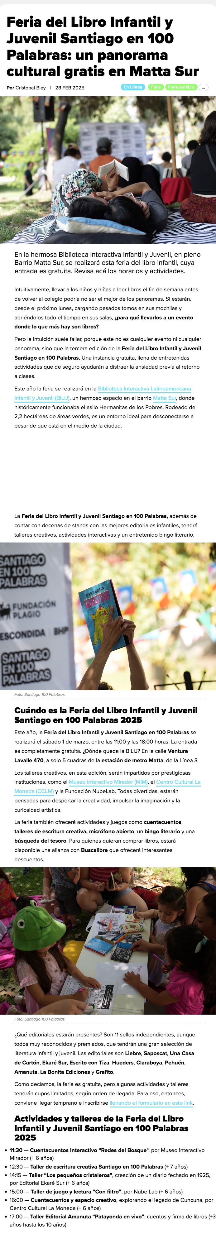 La Feria del Libro Infantil y Juvenil Santiago en 100 palabras vuelve para despedir el verano - (g5noticias.cl)
