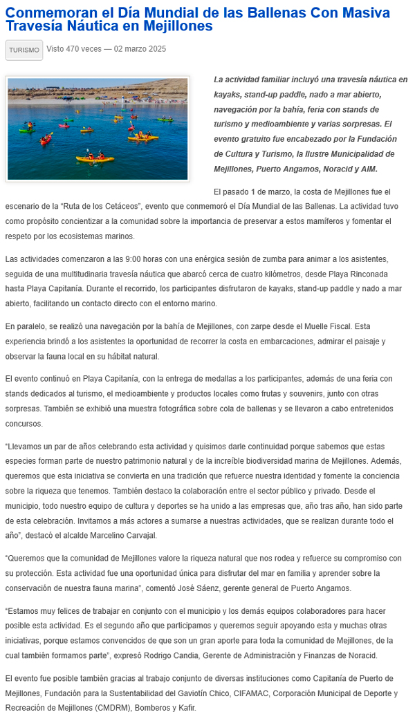 Con travesía náutica en Mejillones se celebró el Día de las Ballenas - (La Estrella)