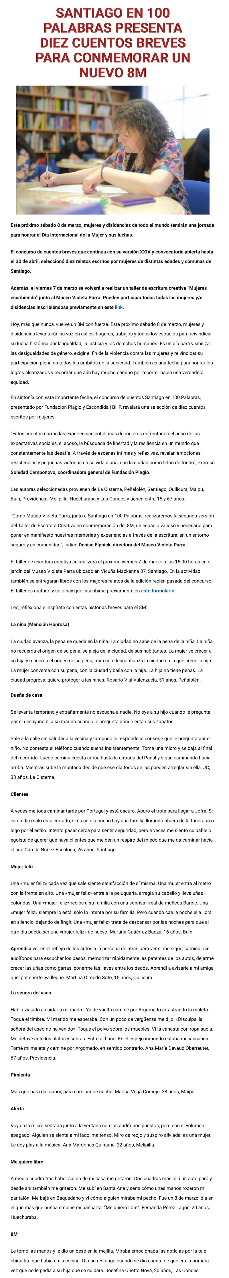 Santiago en 100 Palabras presenta diez cuentos breves para conmemorar un nuevo 8M - (prensaeventos.cl)