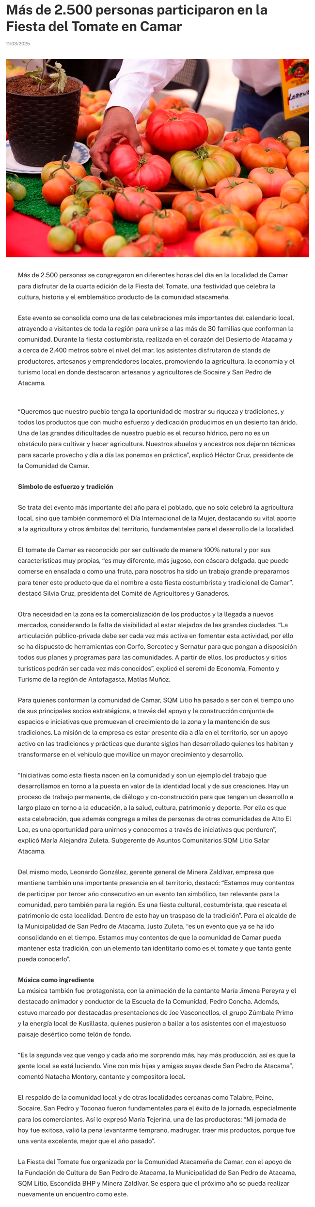 Más de 2.500 personas participaron en la Fiesta del Tomate en Camar en una celebración única de sabor, tradición y música - (redloa.cl)