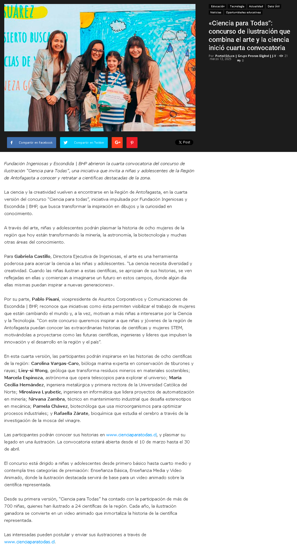 Escondida | BHP impulsa cuarta convocatoria del concurso de ilustración “Ciencia para Todas” - (guiaminera.cl)