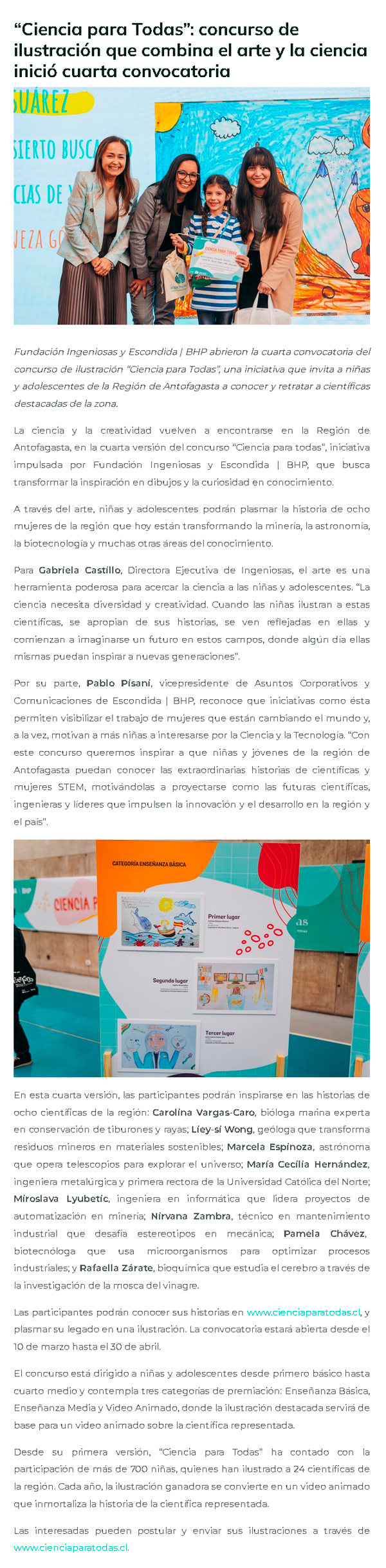 Escondida | BHP impulsa cuarta convocatoria del concurso de ilustración “Ciencia para Todas” - (guiaminera.cl)