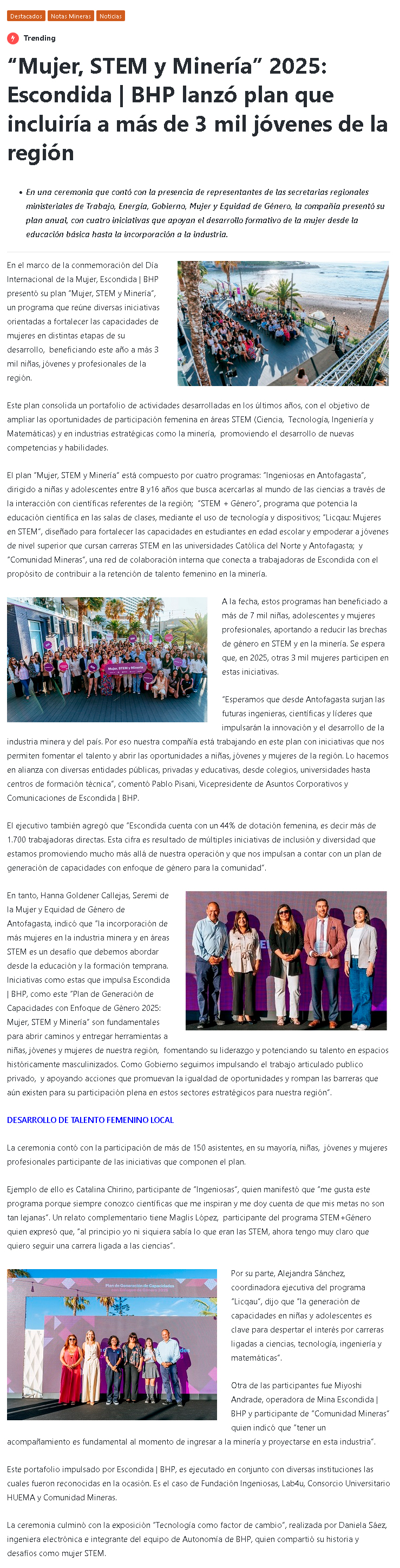 Escondida lanza plan “Mujer, STEM y Minería” 2025 - (minerialocal.cl)
