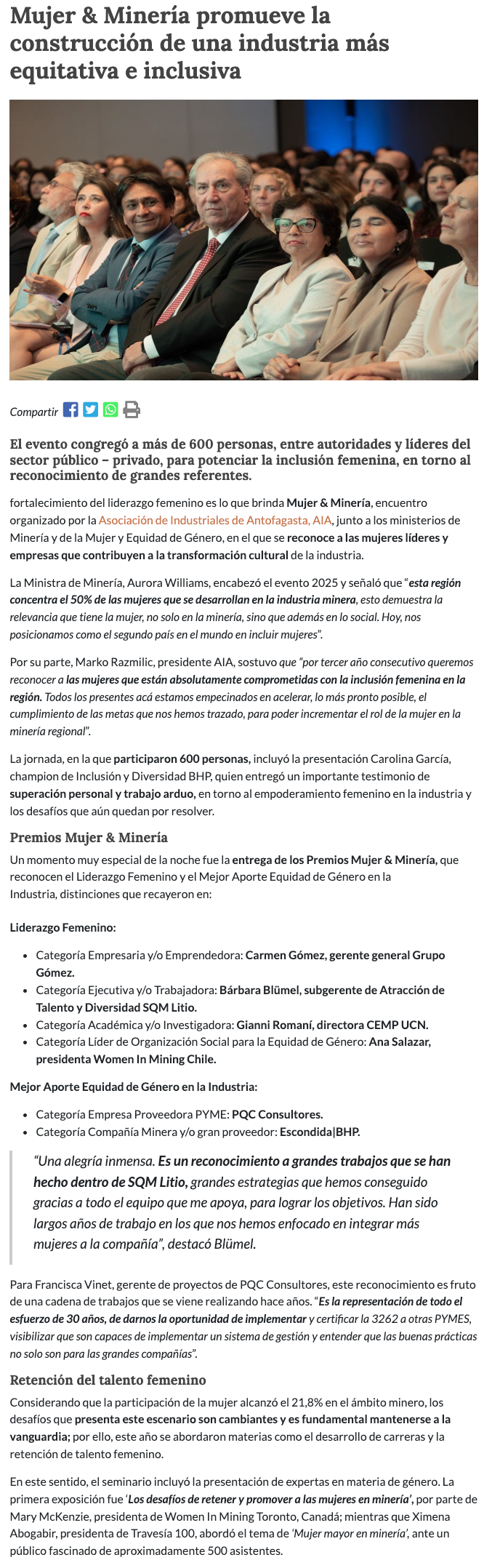 AIA: Cena Mujer & Minería promueve la construcción de una industria más equitativa e inclusiva - (portalminero)