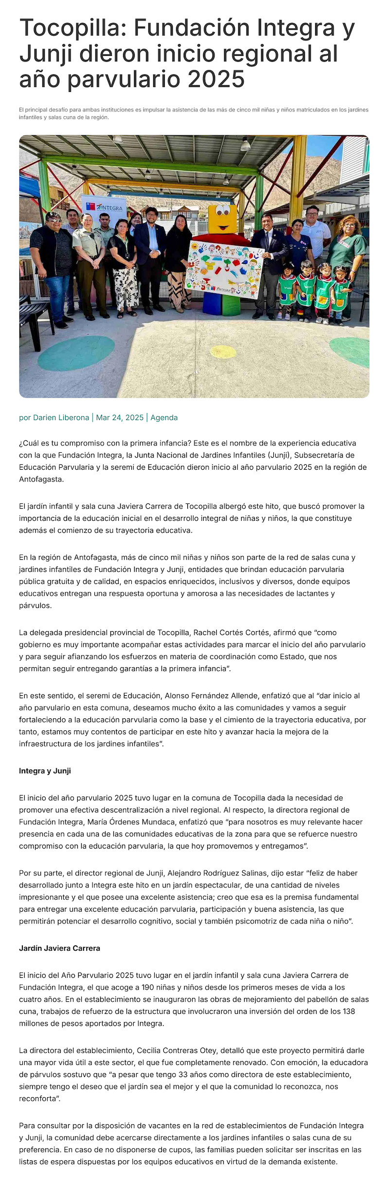 Fundación Integra y Junji dieron inicio regional al año parvulario 2025 - (termometro.cl)