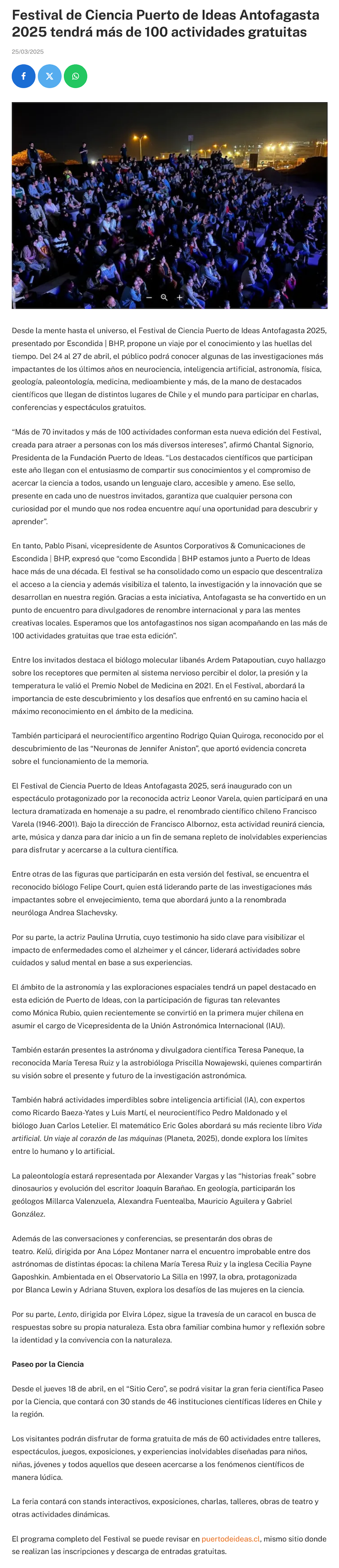 Festival de Ciencia Puerto de Ideas Antofagasta 2025 anuncia más de 100 actividades gratuitas - (El Mostrador)