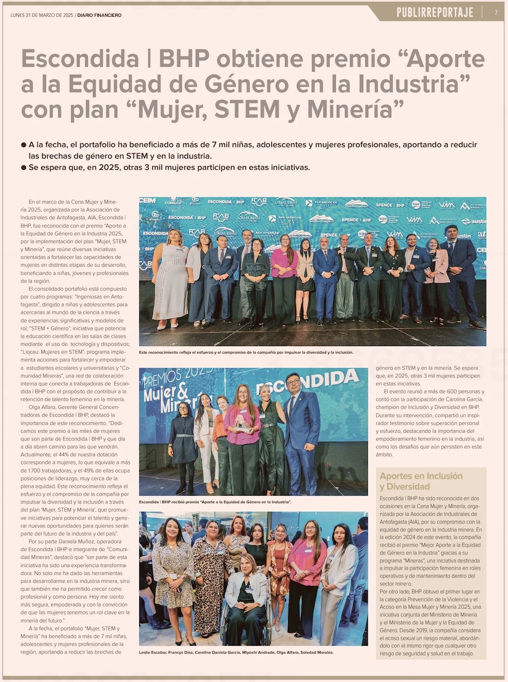 Escondida/ BHP lanzó plan “Mujer, STEM y Minería” 2025: abarcaría a más de 3 mil jóvenes en la región - (Medios Regionales Cadena El Mercurio)
