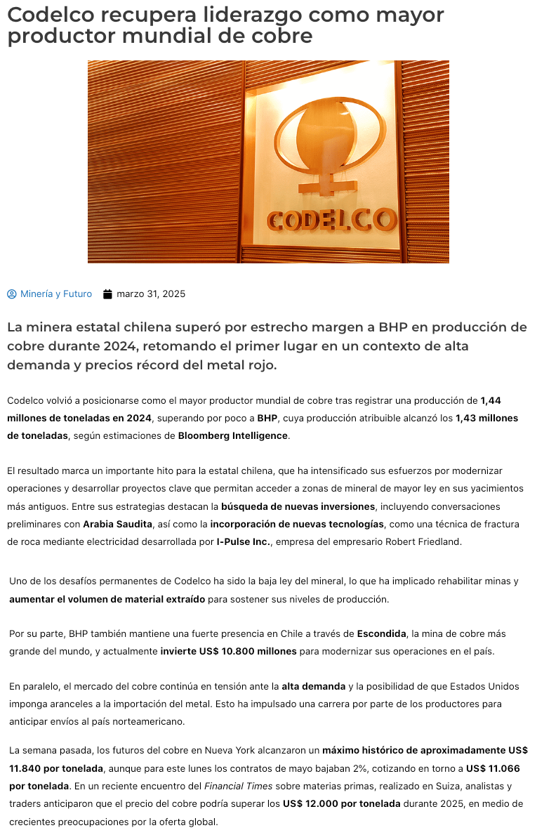 Codelco y BHP: El Duelo por el Título de Mayor Productor de Cobre del Mundo - (redimin)