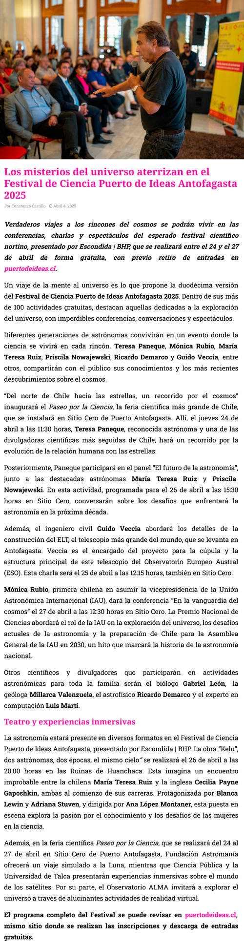 Los misterios del universo aterrizan en el Festival de Ciencia Puerto de Ideas Antofagasta 2025 - (cpcomunicaciones.cl)