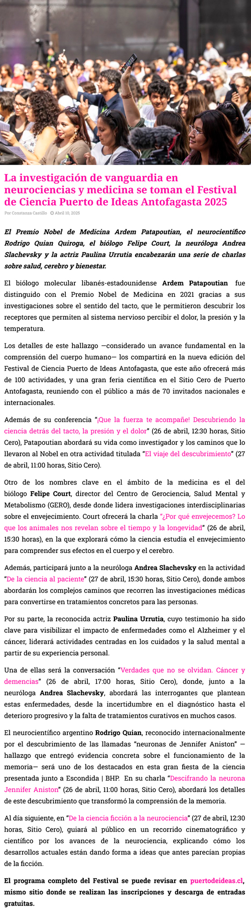Puerto de Ideas Antofagasta 2025 trae a los pioneros mundiales en neurociencia y medicina - (norte360.cl)