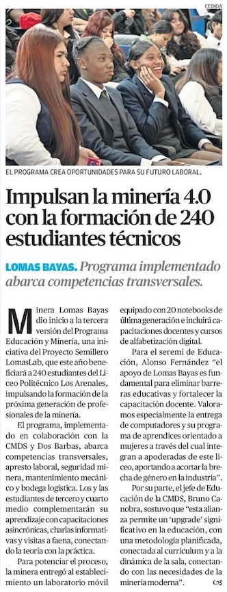 Programa "Educación y Minería" beneficiará al Liceo Los Arenales - (La Estrella)