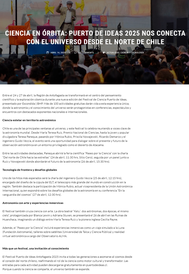 La investigación de vanguardia en neurociencias y medicina se toman el Festival de Ciencia Puerto de Ideas Antofagasta 2025 - (antofagastanoticias)