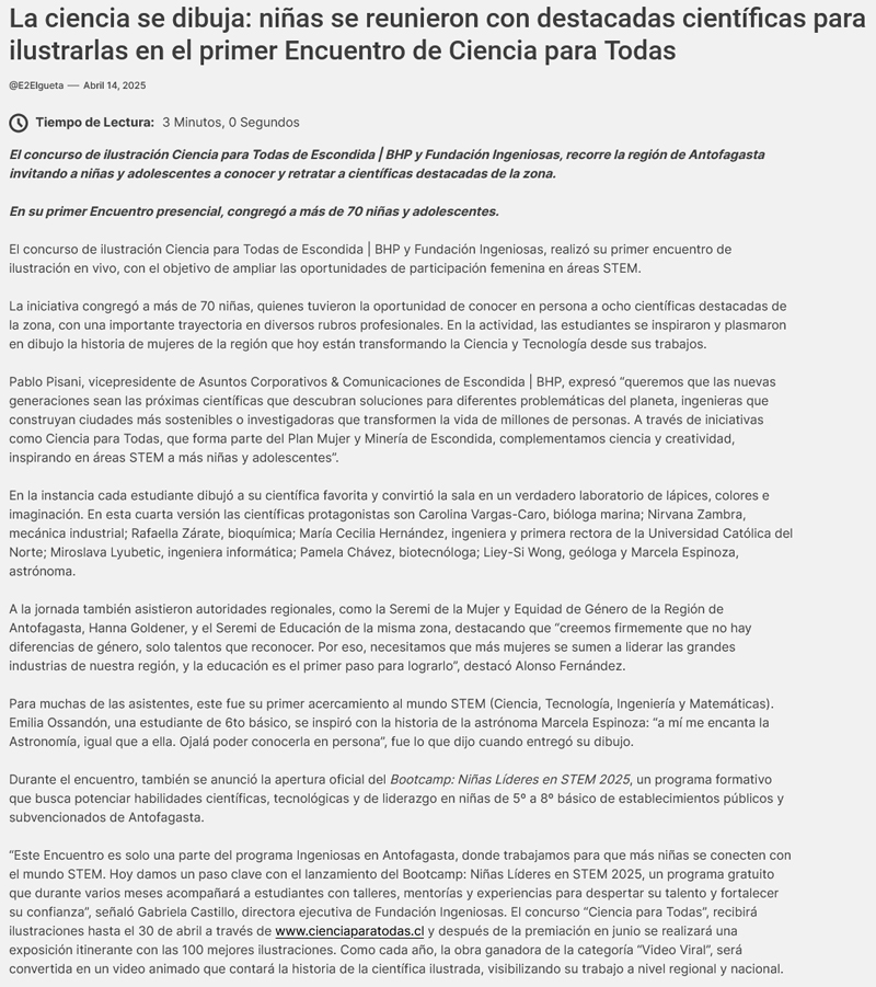 La ciencia se dibuja en Antofagasta: niñas se reunieron con destacadas científicas para ilustrarlas en el primer Encuentro de Ciencia para Todas - (madero.cl)