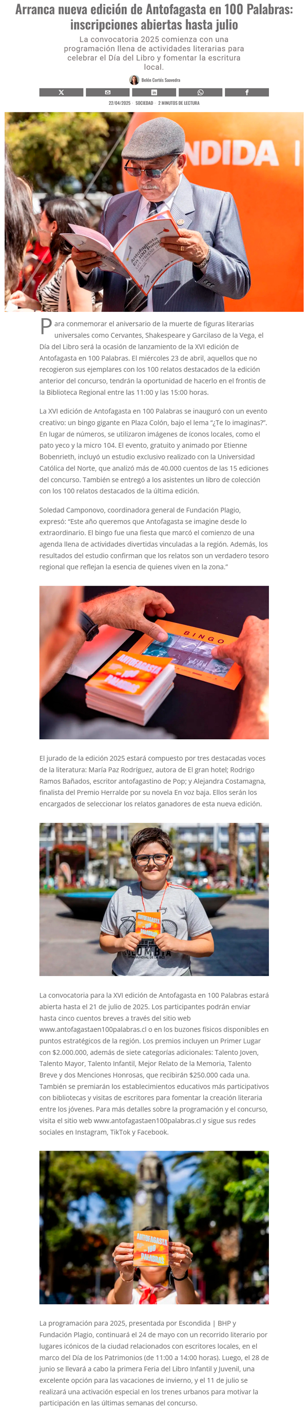 Antofagasta en 100 Palabras se prepara para celebrar el Día del Libro - (El Mercurio de Antofagasta)
