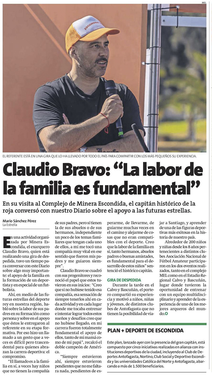Junto a histórico capitán de La Roja, Claudio Bravo, Escondida | BHP lanza “Plan+Deporte” - (El Mercurio de Antofagasta)