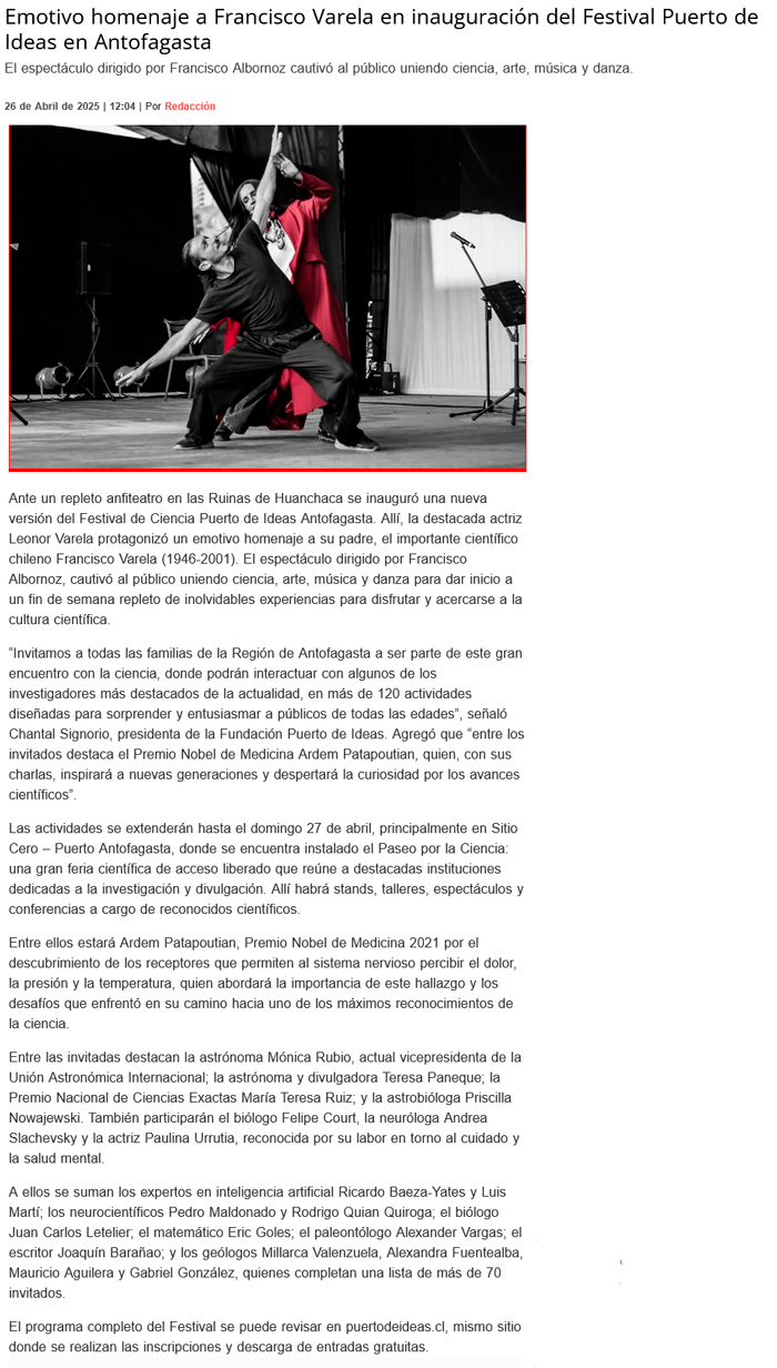 Homenaje a Francisco Varela marcó primera la jornada Puerto de Ideas - (El Mercurio de Antofagasta)