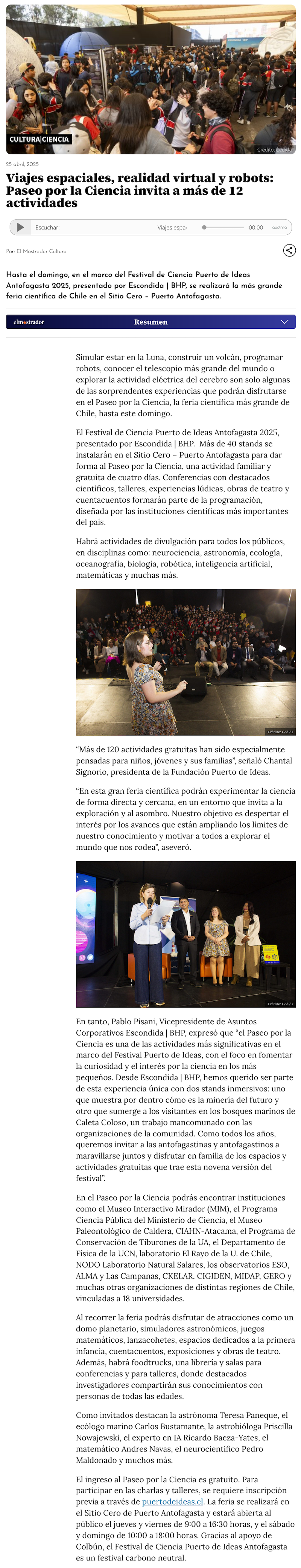 Antofagasta vivió la ciencia y la tecnología en el Festival Puerto de Ideas 2025 - (El Mercurio de Antofagasta)