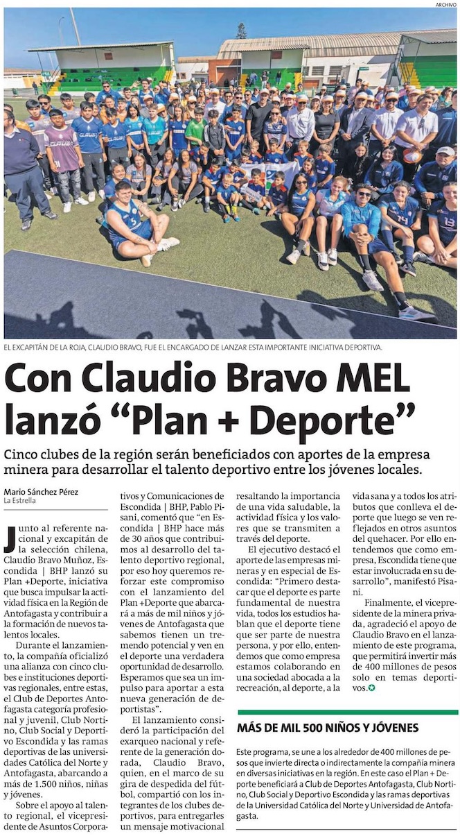 Junto a histórico capitán de La Roja, Claudio Bravo, Escondida | BHP lanza “Plan+Deporte” - (El Mercurio de Antofagasta)