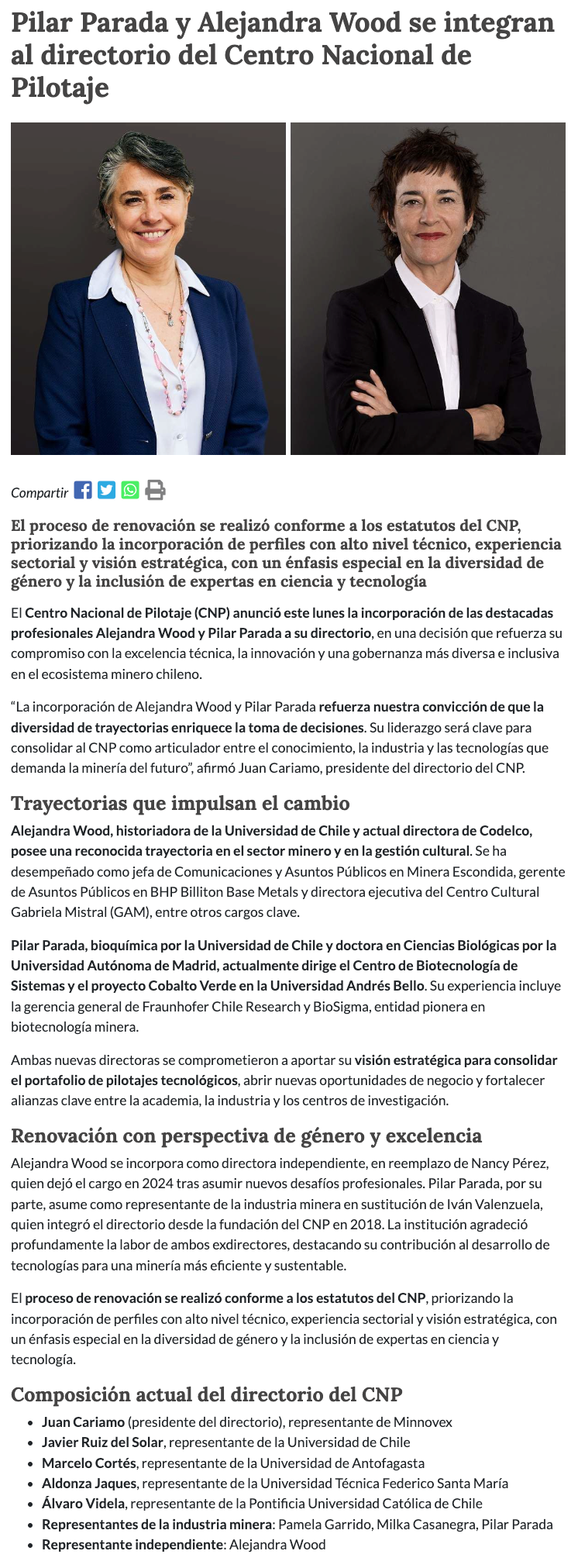 Mujeres líderes de la minería se integran al directorio del Centro Nacional de Pilotaje - (revistacrisol.cl)