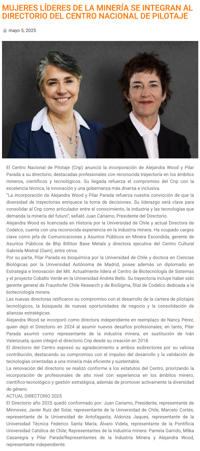 Pilar Parada y Alejandra Wood se integran al directorio del Centro Nacional de Pilotaje - (reporteminero)