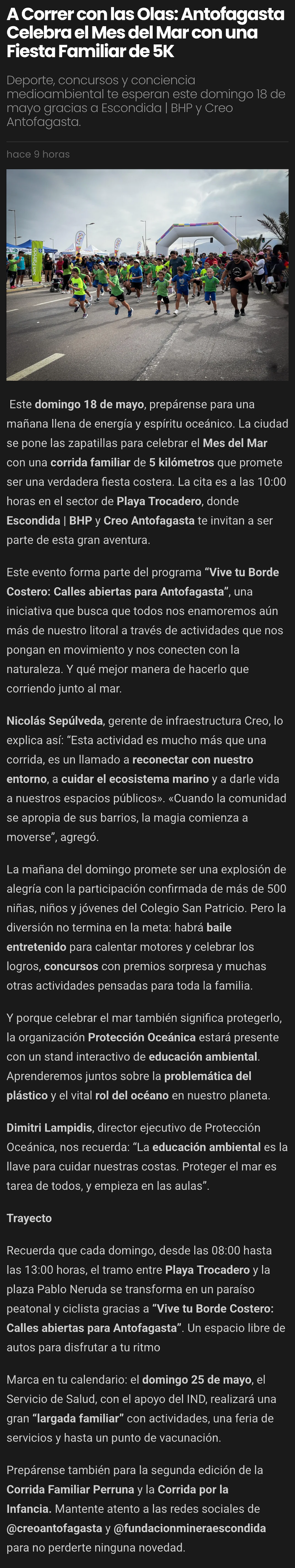 Creo Antofagasta invita a la comunidad a corrida familiar - (3deportes.com)