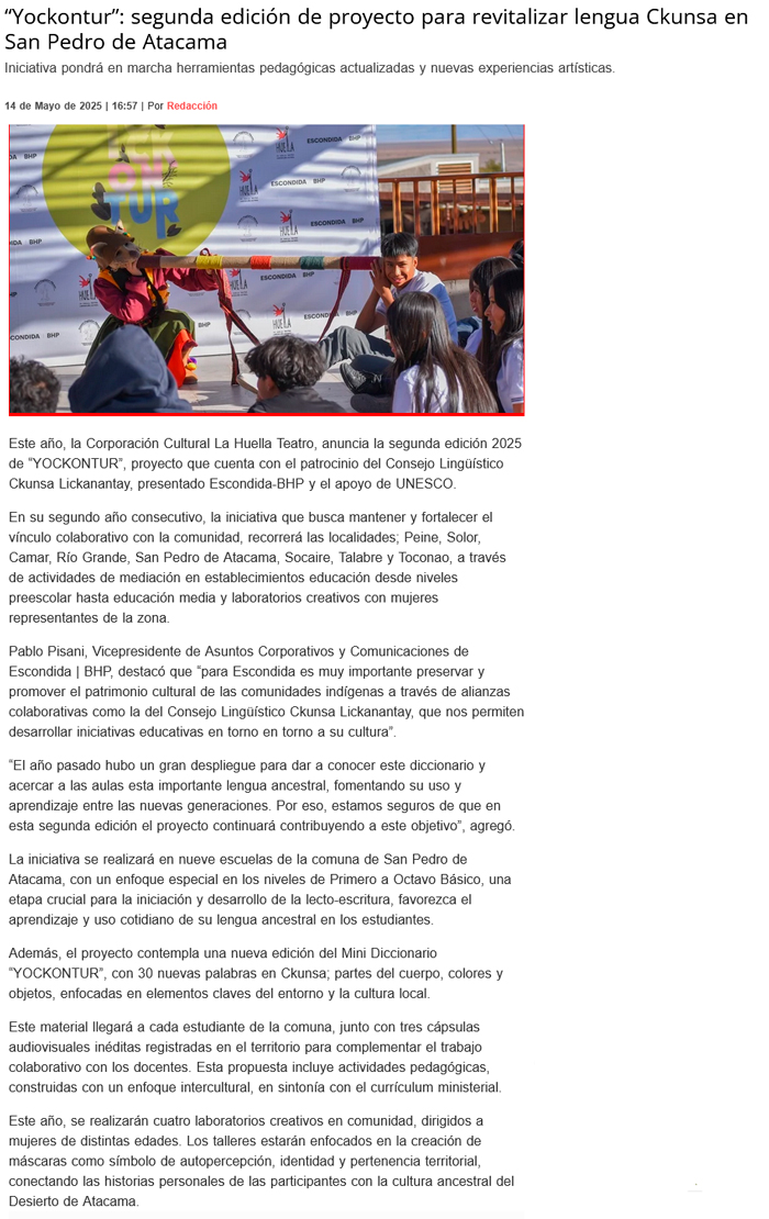 “Yockontur” regresa a San Pedro de Atacama para aportar a la revitalización de la Lengua Ckunsa - (regionesnoticias.cl)