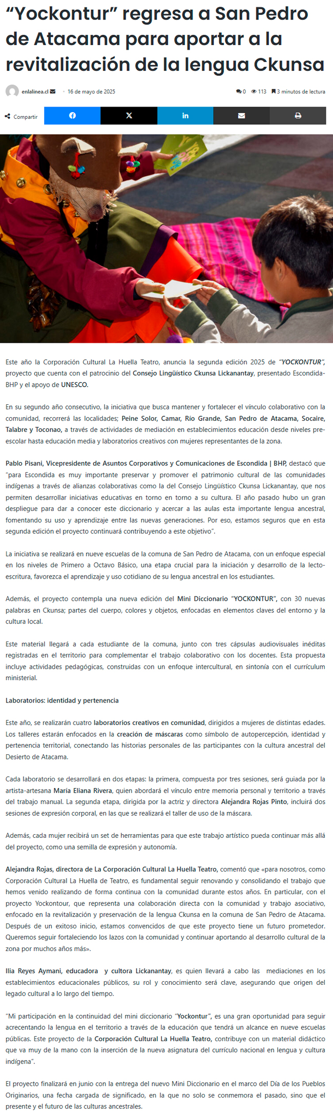 “Yockontur” regresa a San Pedro de Atacama para aportar a la revitalización de la Lengua Ckunsa - (antofagastanoticias)