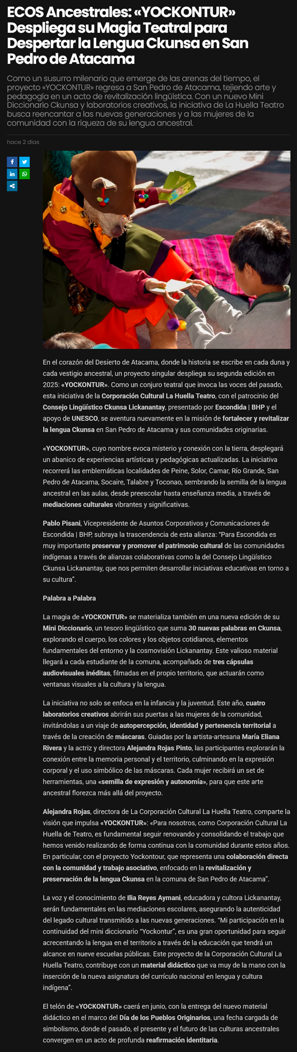 Corporación La Huella Teatro lanza segunda edición de YOCKONTUR en San Pedro de Atacama - (elreferente.cl)